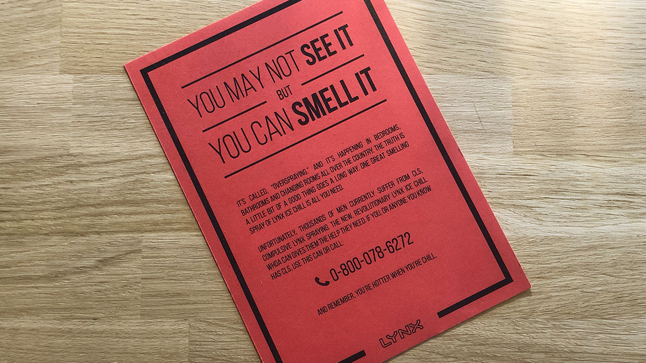 The Whoa! Can then got sent to various creators to spark a conversation about the topic. We even set up a 24/7 Hotline for guys to get help if they feel like they suffer from CAS (compulsive AXE spraying).